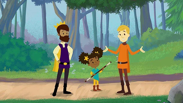 The new series is breaking boundaries, featuring a household with two dads (Sir Cedric and Prince Andrew), making it one of the first children’s television series with an openly gay main character. Following the inspiring and perseverant former pumpkin farmer, Sir Cedric, now grown and married to the prince of his dreams, The Bravest Knight recounts personal tales of his journey. Sir Cedric shares his story with his adopted 10-year-old daughter Nia, on how he transformed from day-time farmer to full-fledged knight. Nia, who is training to become a brave knight herself, learns important values such as honor, justice, and compassion; proving that knighthood is much more than slaying dragons.